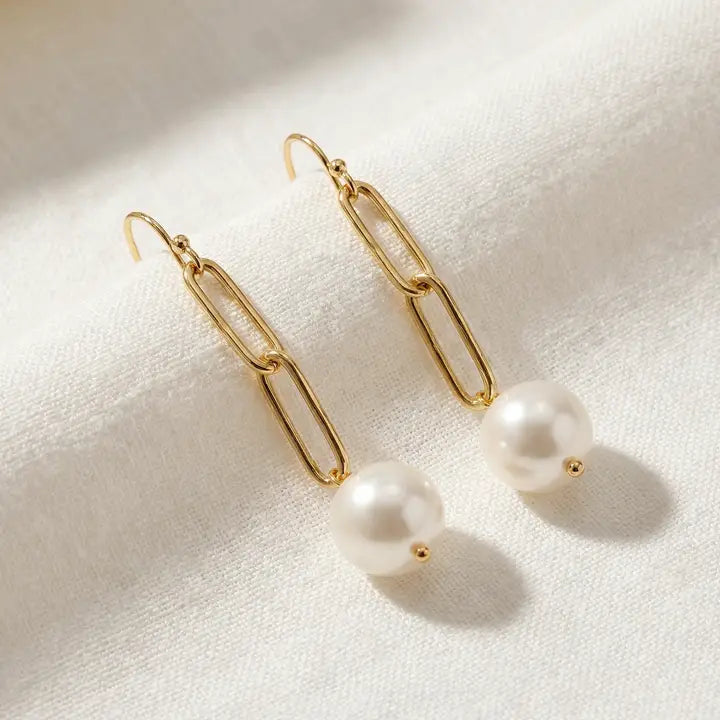Looking for a pair of earrings that say, "I'm classy, but I'm also not afraid to have a good time"? Look no further than our classic gold and pearl dangle hoop earrings! These babies are the perfect combination of elegance and style.