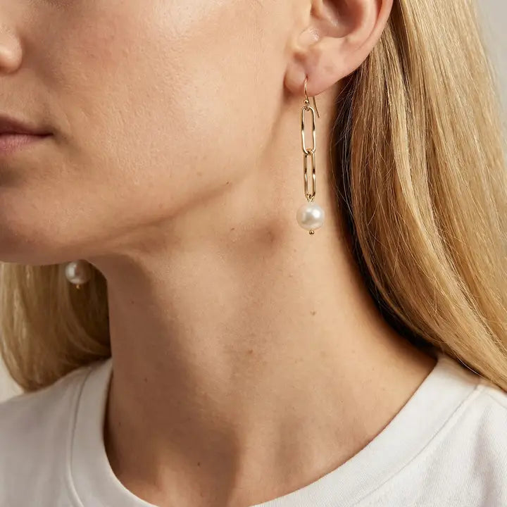 Crafted from high-quality 14K gold fill and featuring genuine pearls, these earrings are sure to turn heads wherever you go. Whether you're heading to a fancy dinner party or just want to add some sophistication to your everyday look, these earrings are the perfect choice.