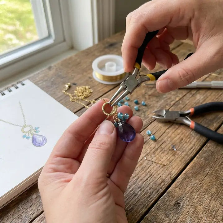 24K gold vermeil or sterling silver necklace with semi precious stone pendant
