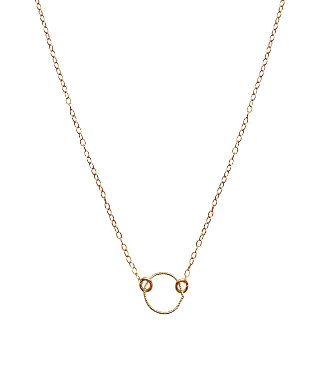 14K gold fill or sterling silver chain with 24K gold vermeil or sterling silver hoop charm. The hoop can be textured or smooth. Size of hoop is 10mm. 16" chain.